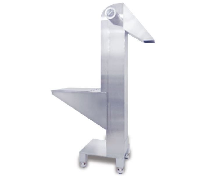 Alimentador automático de frascos para linhas de embalagem farmacêutica. Desembaralha e orienta os frascos em alta velocidade.