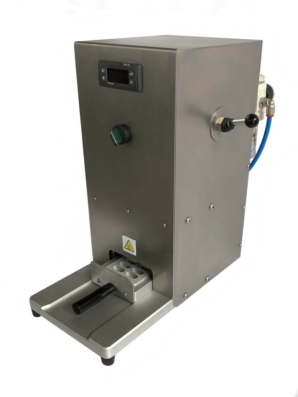 Seladora de embalagens contínua da IMEL para sachês, envelopes e embalagens flexíveis farmacêuticas. Alta velocidade de selagem com controle preciso de temperatura e pressão.